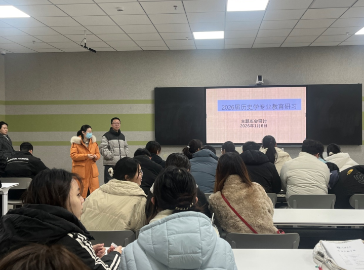 2026年1月6日下午,社会科学学院于南湖校区教三楼210教室举办历史学专业教育研习主题研讨会。本次会议围绕“中学历史主题班会”展开深入研讨,旨在提升历史学专业师范生的教学实践能力与育人素养。会议由学院教学副院长寇博文主持,学院实习指导教师和本科毕业班实习生代表共同参与。